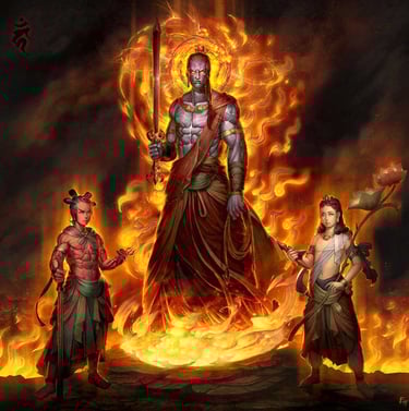 The Supreme Deity in Samurai Buddhism is the Almighty Fudo Myoo - the warrior form of the Cosmic Buddha of the Universe Vairocana Dainichi Nyorai. Dainichi is the absolute highest being in the Buddhist Cosmos and can be seen in the tallest statues of both Japan (Todaiji) and China (Spring Temple Buddha and Longman Grottoes). Dainichi is the source of all Buddhas and all in existence -- thus being the God Equivalent in Buddhism. His warrior form Fudo Myoo is the "Master above all Buddhas" and the Leader of all 13 Buddhas and Bodhisattvas that are the most popular Buddhist deities. Fudo Myoo helped the Tang Dynasty and the Samurai conquer all enemies including even the mighty Mongols and His statue was even carried into battle by history's greatest warriors Musashi and Shingen. Tokugawa Ieyasu took his Buddhist vows in front of Fudo and prayed to Fudo before the most important battle that made Tokugawa the most prosperous dynasty in history. Fudo-sama teaches us to be unmovable and unswayable in our convictions and to use the flames of adversity to guide us to Enlightenment. Fudo Buddha also commands us to defend Buddhism against all enemies of Buddha and Buddhist texts state that Fudo conquered the Hindu god Shiva in battle and intimidate the Hindu gods Vishnu, Brahma and others. During the Christian invasion of Japan, Fudo temples were erected at key spots and the Christians were defeated. Fudo Myoo is thus the only Deity to never lose a war and is called the true Almighty Deity. Fudo's temple Naritasan Shinshoji is among the top 2 most widely visited Buddhist temples in the world. Its name means" Victory in Battle by the blessings of Fudo".